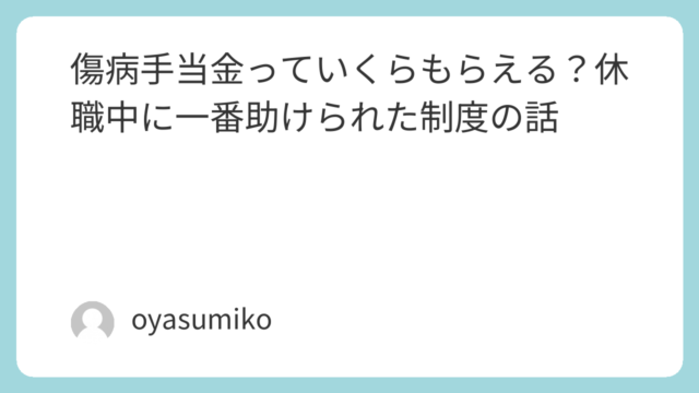 ※この記事は筆者の体験をもとに書いています傷病手当金ってどんな制度?傷病手当金は、病気やケガで働けなくなった人が、休職中に受け取れるお金。私も休職するまで、正直この制度の存在をちゃんと知らなかった。簡単に言うと、会社を休んでいる給料が出てい...