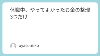 休職してから、一番しんどかったのは「お金のことを考える時間」やった。収入どうなるんやろいつ振り込まれるんやろこのまま減っていくだけなんかな考えてもすぐ答え出えへんのに、頭の中ではずっと再生される感じ。全部ちゃんと管理しようとして、逆に疲れて...